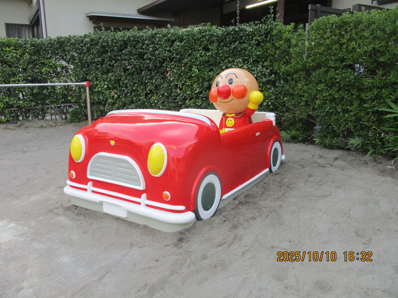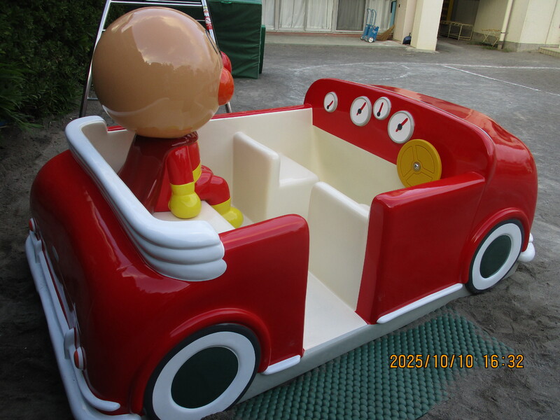 長福寺第二幼稚園園庭の人気者だったパンダさんとぞうさんが引退して、さみしかった幼稚園のお庭になんとアンパンマンカーがやってきました‼遊具を目にした幼稚園のおともだちは大喜び💕みんな、アンパンマンと一緒にドライブしてたくさん遊んでもらおうね😊