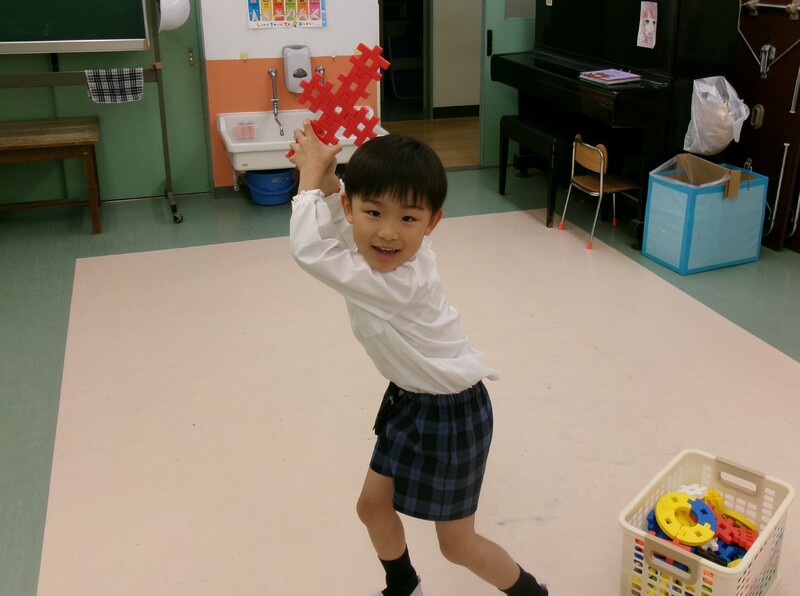男の子はいろいろな機能のついた、世界に一つだけの剣を真剣に作っていました。ビームが出たり、進化したり・・・とっても強い剣を作れたので、ポーズもかっこよくきめます⭐