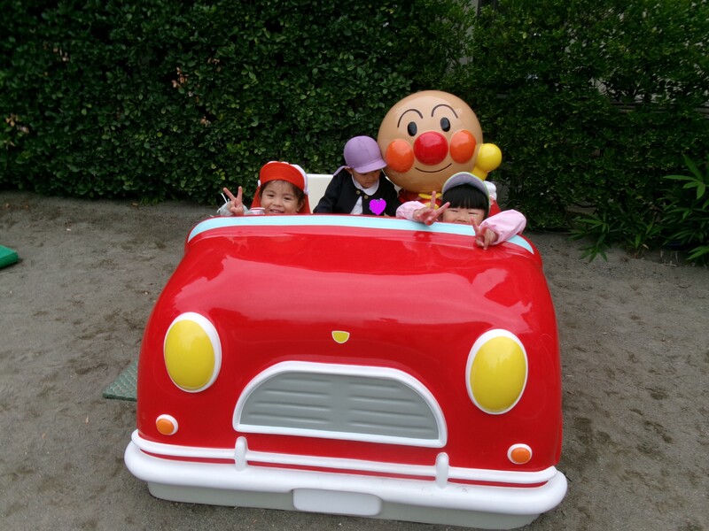 外遊びでは新しいアンパンマンの遊具に目を輝かせて、毎日ディズニーランドや子ども達が家族でお出かけして楽しかった場所などを目的地に運転しています。