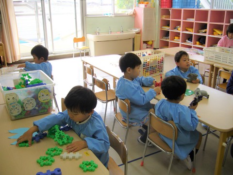 新しい環境にも慣れて お部屋で仲良く遊べるようになりました。