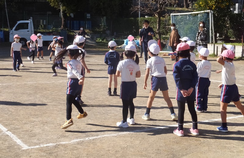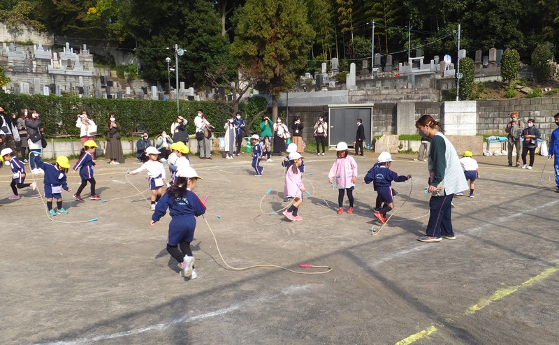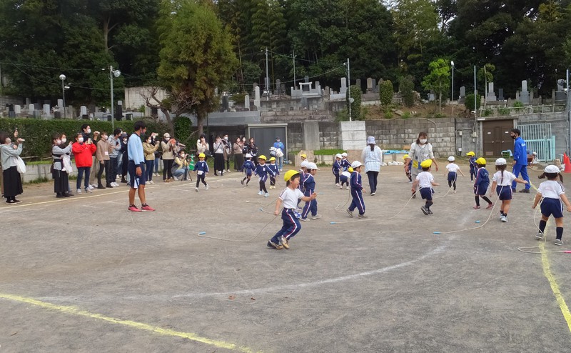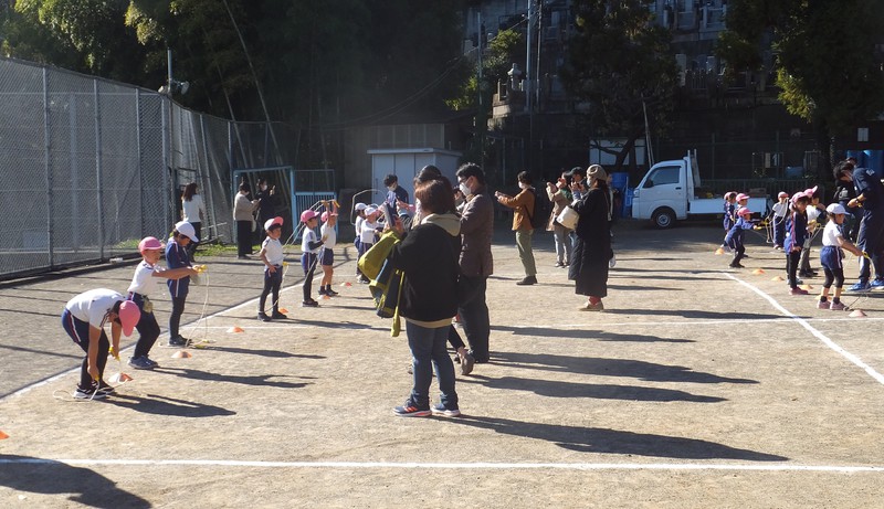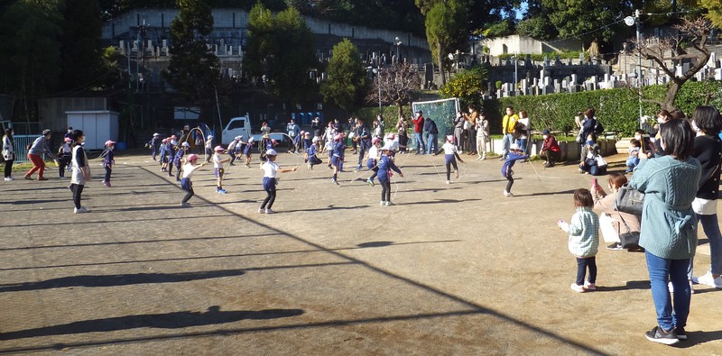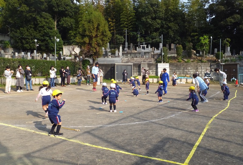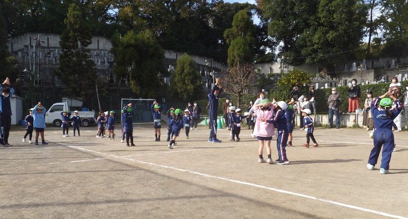 緊急事態宣言が解除され、心地よい戸外でクラス毎に体操参観を行いました。