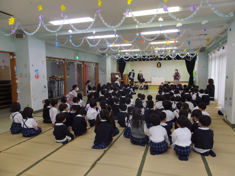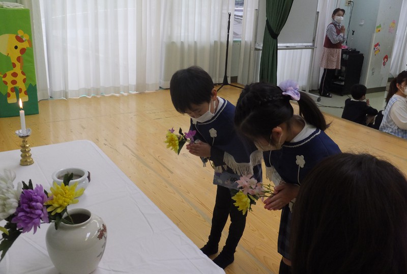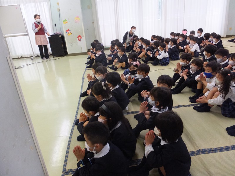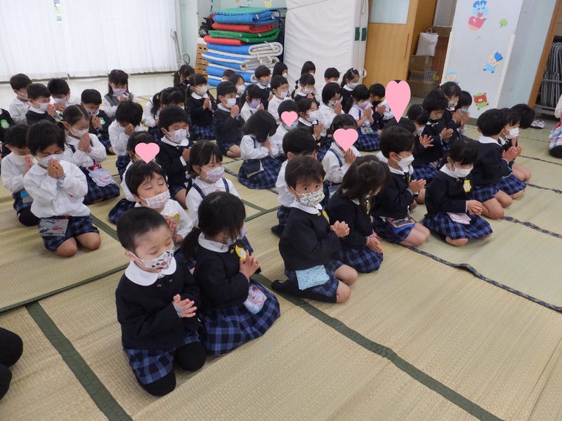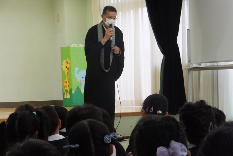 コロナ禍のため 園児全員がご住職のお話を聞く機会を設けることが難しかったのですが、感染対策を強化しながら今年度 初めて