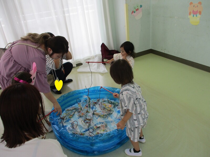 お菓子釣り。みんな上手に釣れました!