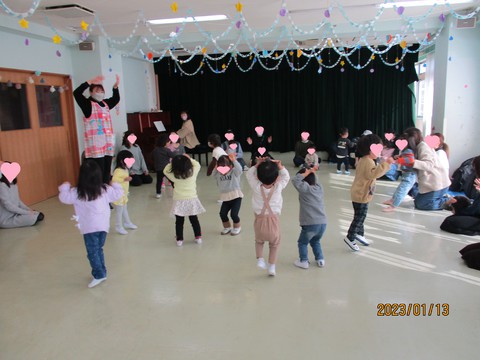 4月に入園を控えているお友達のリトミックを1月13日(金)、幼稚園ホールにて行ないました。