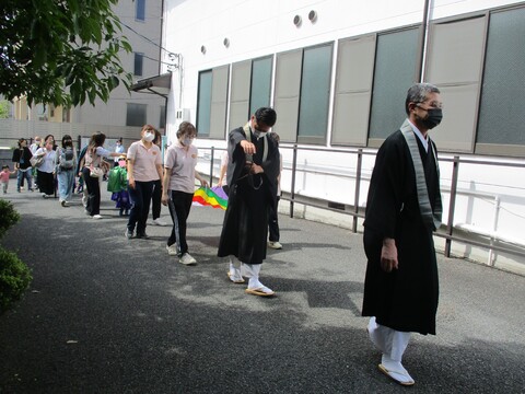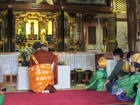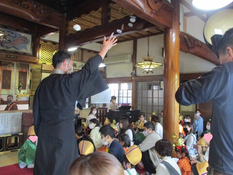 綺麗な衣装を身にまとい、稚児行列をした後、本堂にてお釈迦様の誕生のお祝いをしました!