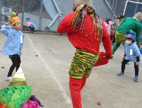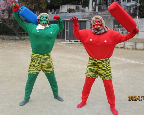 急に出てきた鬼に驚きながらも、皆で豆まきを行ない、鬼を退治することが出来ました!