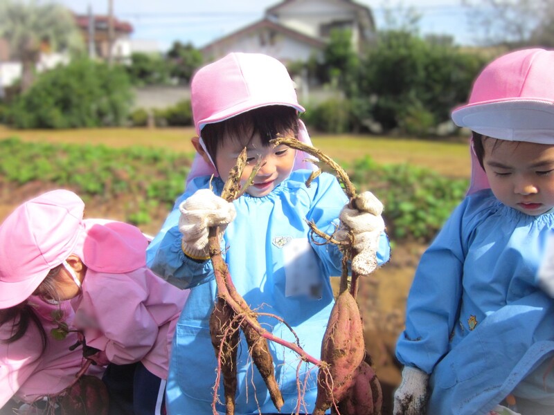 満3歳児クラスも保護者の方と一緒に大きなお芋をほりました☆(さつまいもほり)
